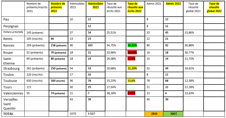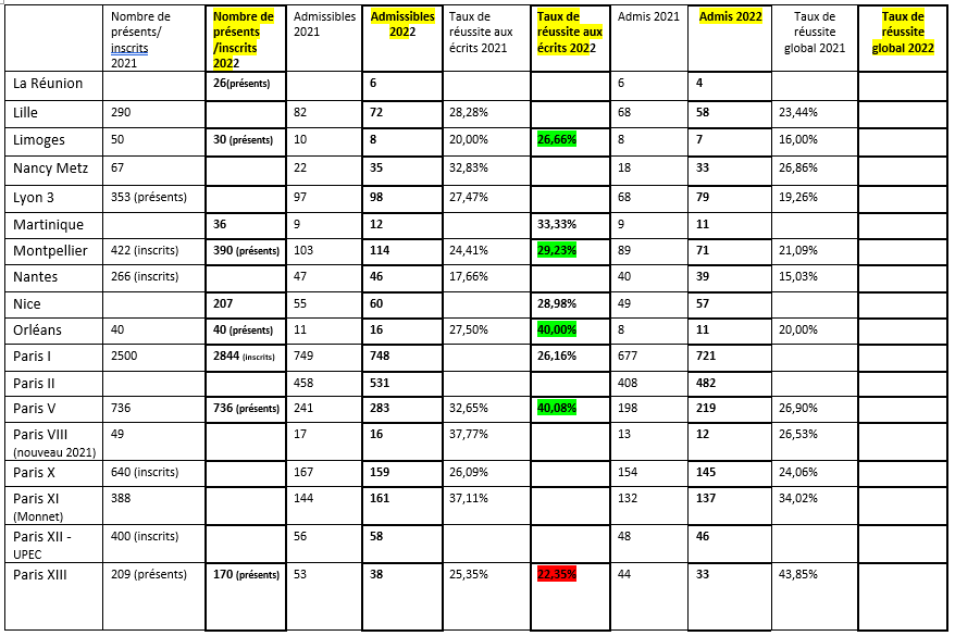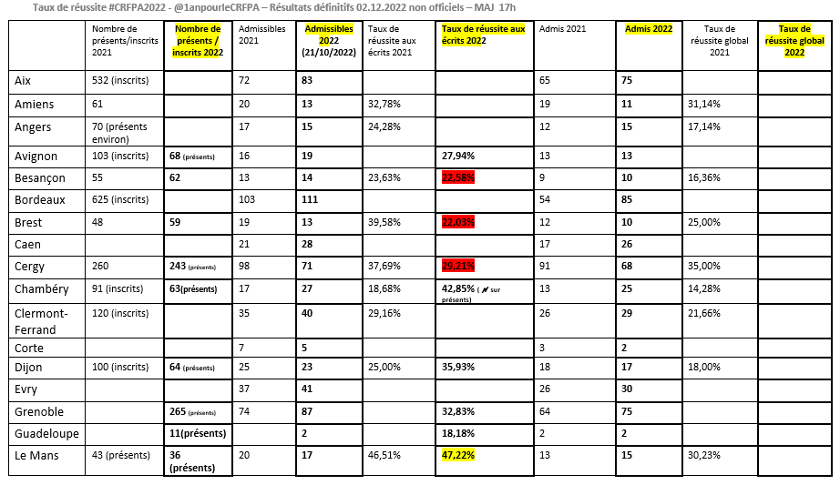 2 réflexions sur “Résultats définitifs #CRFPA2022 et comparatif avec 2021