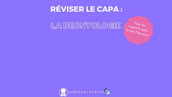 Sont proposés dans cet article, des supports pour réviser l'épreuve de déontologie au CAPA. L'ensemble de ces supports sont proposés en accès libre. 1/ Fiches de révision - Basées sur l'ouvrage " Règles de la Profession d'Avocat" - Dalloz DEONTOLOGIE-–-FICHES-DE-REVISION-Télécharger 2/ Questions principales et subsidiaires - épreuve de Déontologie DEONTOLOGIE-CAPA-Questions-principales-et-subsidiaires-Télécharger
